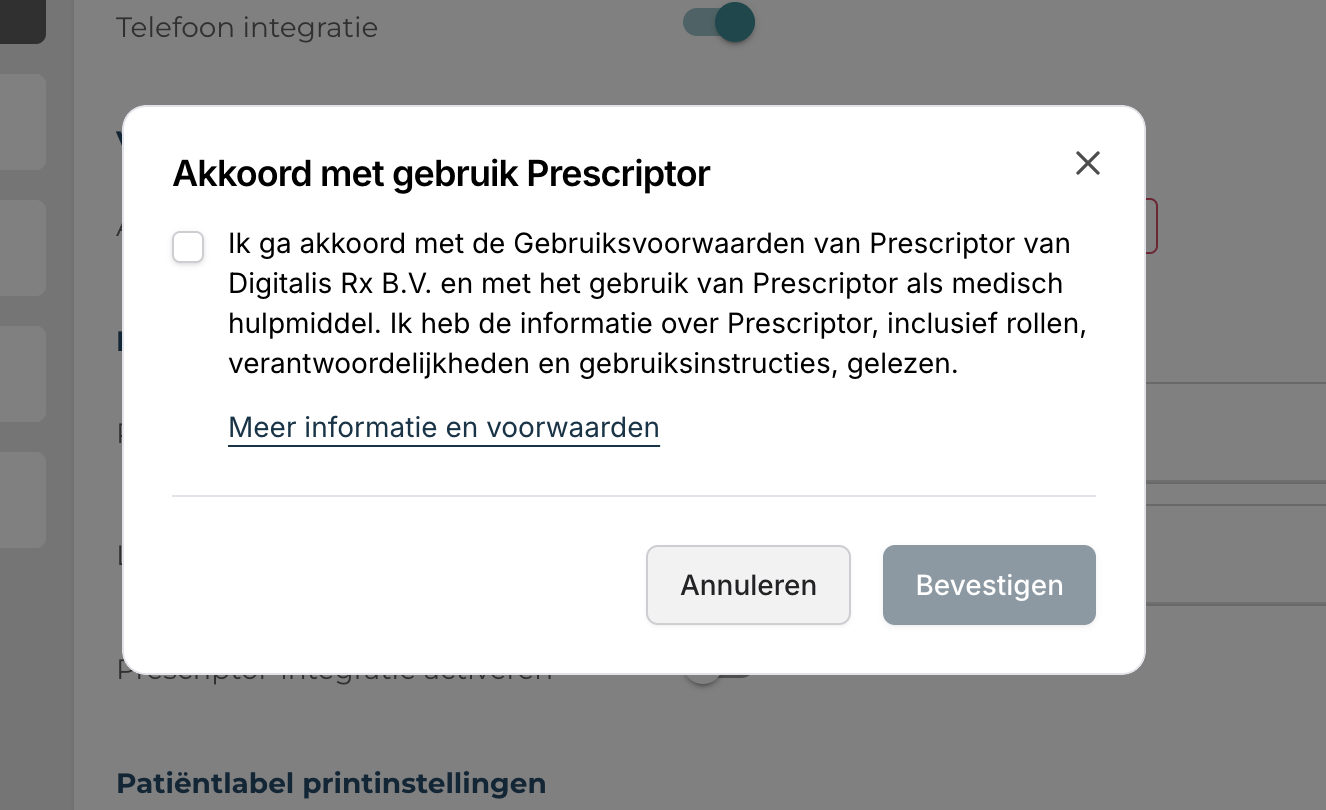 - Na akkoord gaan is Prescriptor klaar voor gebruik.